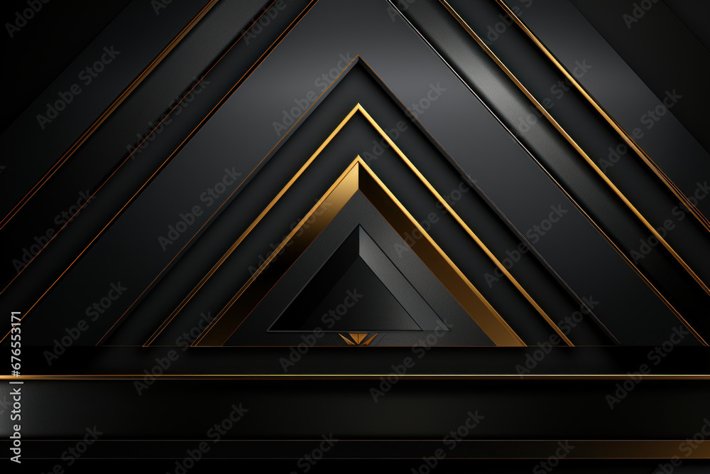The watermark will not be included on Wall mural.: Abstract golden lines etched on a black background, creating a luxurious frame design with geometric