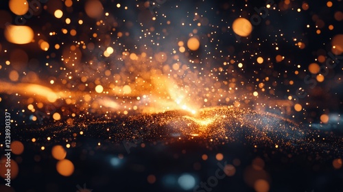 Wall mural abstract golden particles and glittering lights on a dark background with a luminous glow and soft f