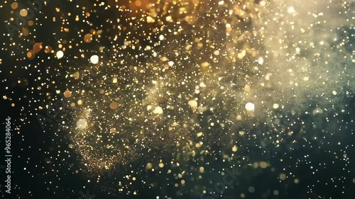 The watermark will not be included on Wall mural.: Abstract golden particles floating in dark space background