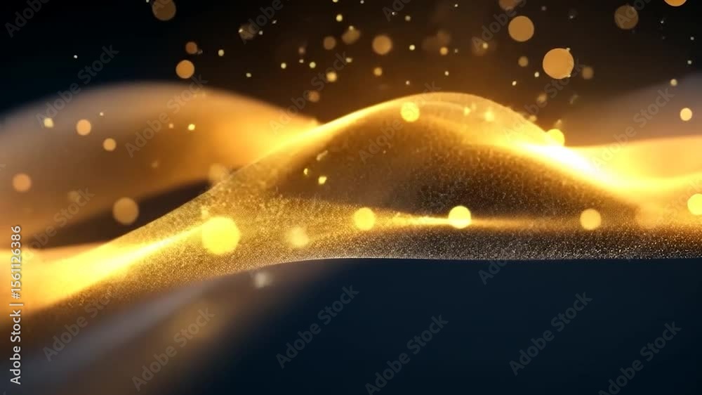 Wall mural abstract golden wave particles with bokeh effect on dark blue background creating elegant and dynami