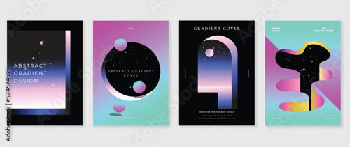 Wall mural abstract gradient background vector set. futuristic style cover template with vibrant 3d geometric s - Wall murals Wall mural abstract gradient background vector set. futuristic style cover template with vibrant 3d geometric s - Wall murals