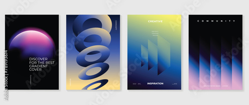 The watermark will not be included on Wall mural.: Abstract gradient background vector set - minimalist style cover template with vibrant perspective 3d