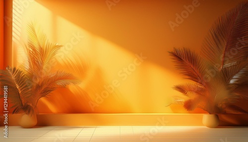 The watermark will not be included on Wall mural.: Abstract gradient orange studio background for product presentation empty room with shadows of windo