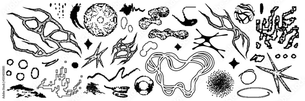 Wall mural abstract graphic pixel shape asset pack. pixelated and bitmap abstract geometric figures in vector f