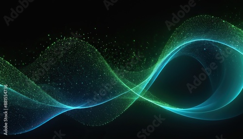 Wall mural abstract green and blue particle background. flow wave with dot landscape. digital data structure. f