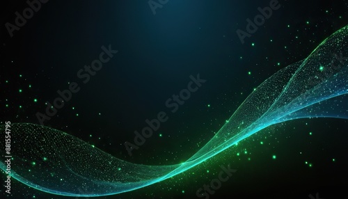 Wall mural abstract green and blue particle background. flow wave with dot landscape. digital data structure. f