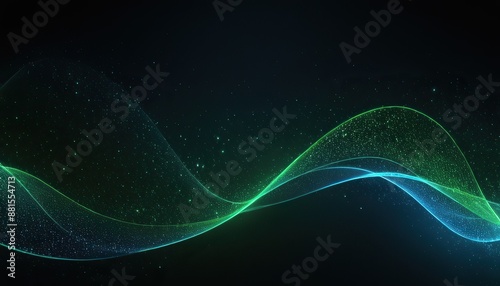 Wall mural abstract green and blue particle background. flow wave with dot landscape. digital data structure. f