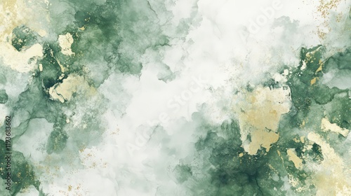 The watermark will not be included on Wall mural.: Abstract green and gold watercolor background with marble effect