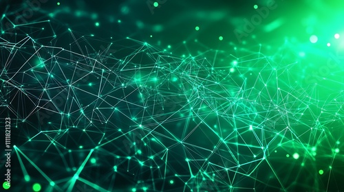 Wall mural abstract green digital network background with glowing connective lines and dots in dark space