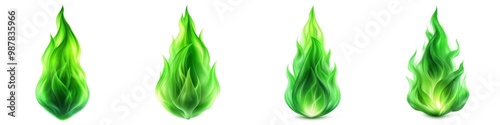 The watermark will not be included on Wall mural.: Abstract green flames on a transparent or white background, showcasing a dynamic and vibrant visual