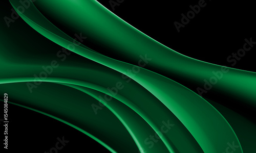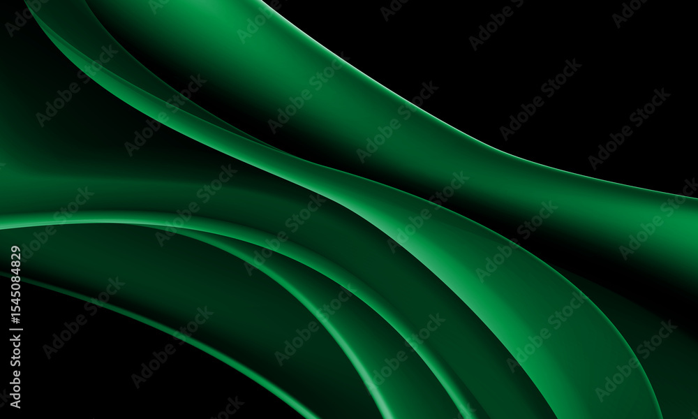 Wall mural abstract green glossy wave curve overlap design modern futuristic technology on black background vec