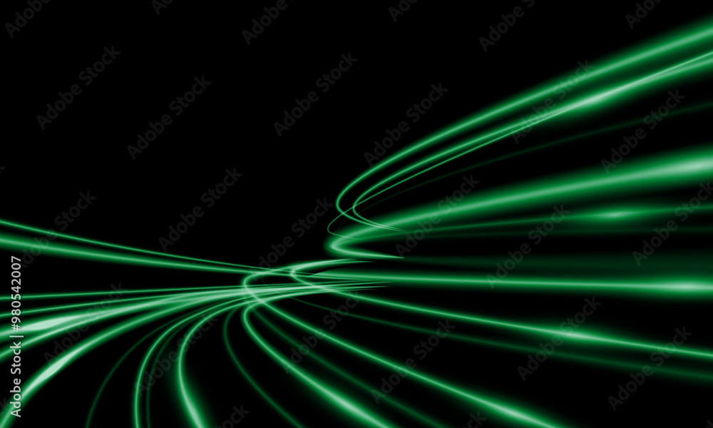 The watermark will not be included on Wall mural.: Abstract green light fast speed curve dynomic motion on black background vector