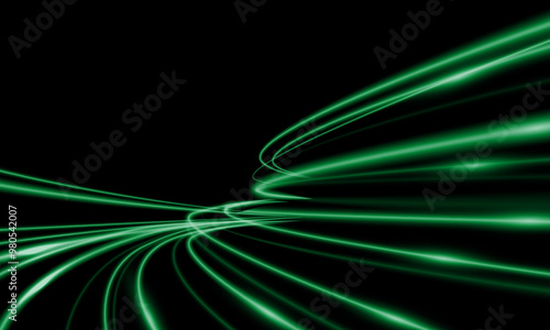 Wall mural : Abstract green light fast speed curve dynomic motion on black background vector