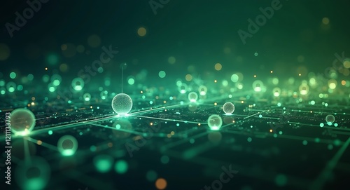Wall mural abstract green network data sphere background image - Wall murals Wall mural abstract green network data sphere background image - Wall murals