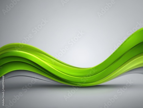Wall mural abstract green wave flowing dynamically on gray background studio shot modern design graphic element