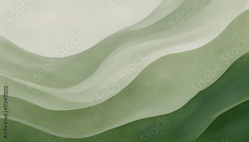 The watermark will not be included on Wall mural.: Abstract green wave texture with flowing contour lines and soft gradient motion creating serene orga