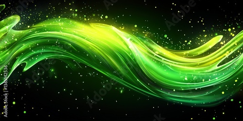 Wall mural : Abstract green wave with luminous particles and dynamic motion