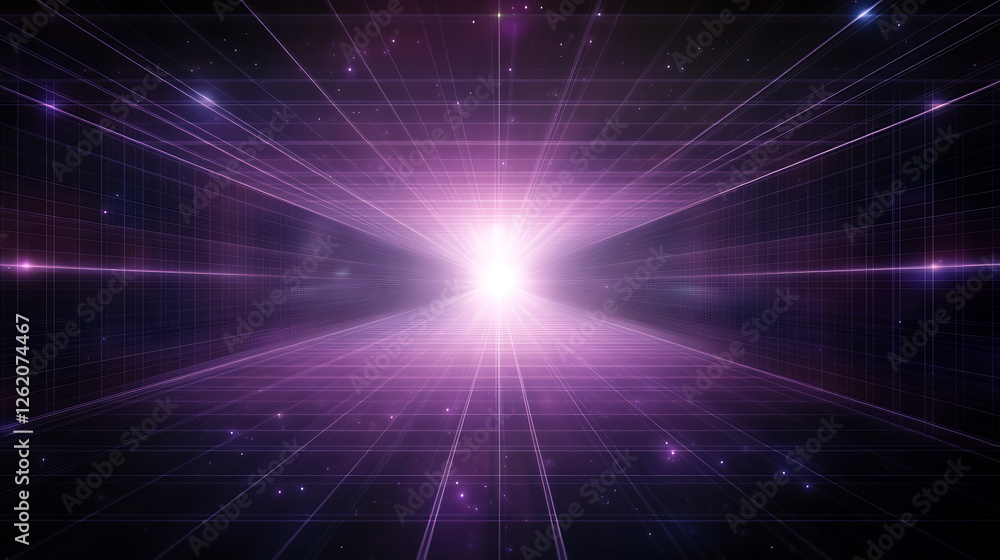 The watermark will not be included on Wall mural.: Abstract grid portal to another dimension shining in the void of deep dark space background
