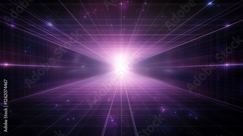 Wall mural : Abstract grid portal to another dimension shining in the void of deep dark space background