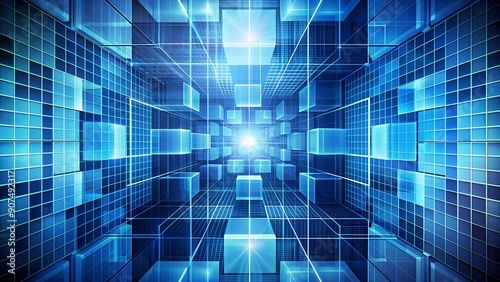 Wall mural abstract grid symphony in azure hues ai generated - Wall murals Wall mural abstract grid symphony in azure hues ai generated - Wall murals