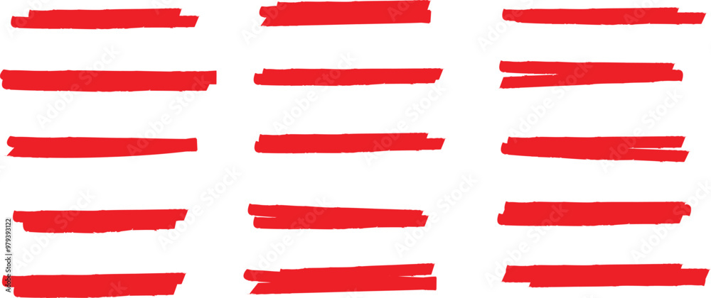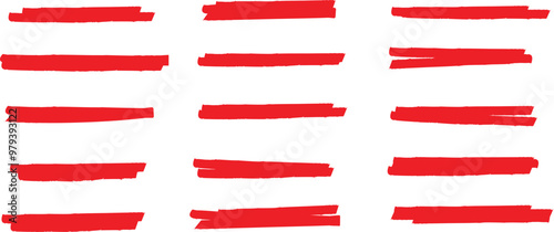 The watermark will not be included on Wall mural.: Abstract hand drawn red highlight marker lines - red stroke marker - text highlights vector illustrati