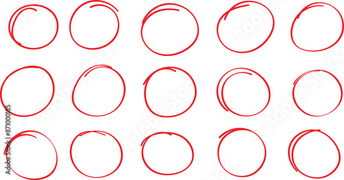 The watermark will not be included on Wall mural.: Abstract hand drawn round red marker set - red round stroke frame - text highlight circle frame - vecto