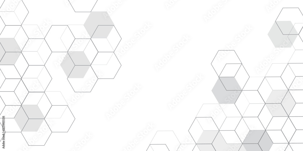 Wall mural abstract hexagon background. futuristic abstract honeycomb mosaic grey technology background. surfac