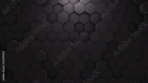 Wall mural : Abstract hexagon geometric intro - animated surface loop footage - dark black hexagonal grid pattern b