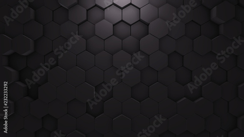 Abstract hexagon geometric texture - black surface illustration - dark bright and clean hexagonal gridWall mural