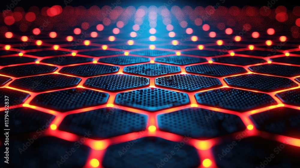 The watermark will not be included on Wall mural.: Abstract hexagon network: futuristic digital background - glowing red and blue geometric pattern - mod