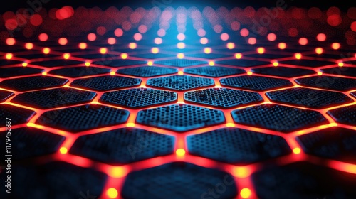 Wall mural abstract hexagon network: futuristic digital background. glowing red and blue geometric pattern. mod