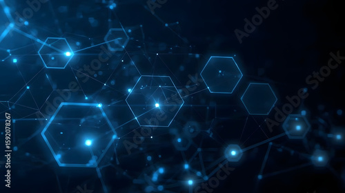 The watermark will not be included on Wall mural.: Abstract hexagonal digital technology background featuring interconnected glowing hexagons in a futu