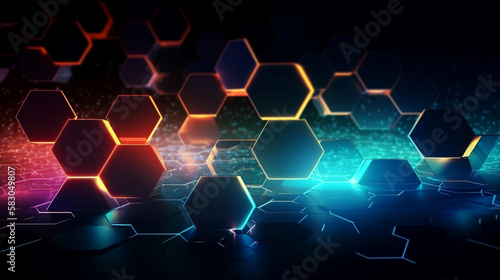 The watermark will not be included on Wall mural.: Abstract hexagonal geometric ultra wide background generative ai