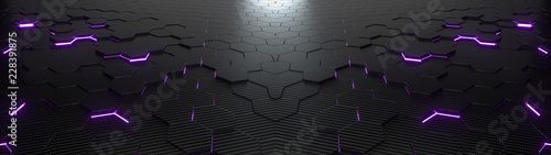 Wall mural abstract hexagonal geometric ultra wide background. structure of lots of hexagons of carbon fiber wi