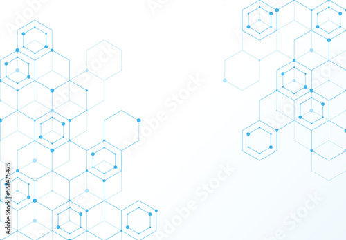 Wall mural : Abstract hexagonal molecular structures in technology background and science style - medical design -