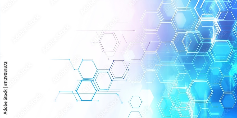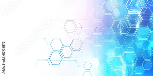 Wall mural : Abstract hexagonal network with glowing blue and white elements on a futuristic gradient background