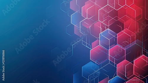 The watermark will not be included on Wall mural.: Abstract hexagonal pattern in red and blue tones, suitable for backgrounds or tech designs -