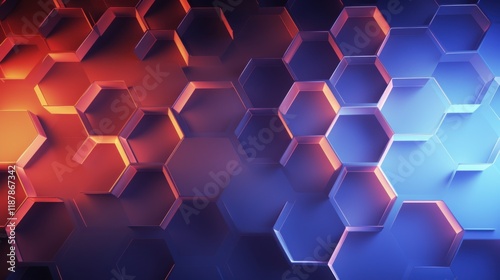 The watermark will not be included on Wall mural.: Abstract hexagonal pattern on a smooth gradient background, with a scientific feel