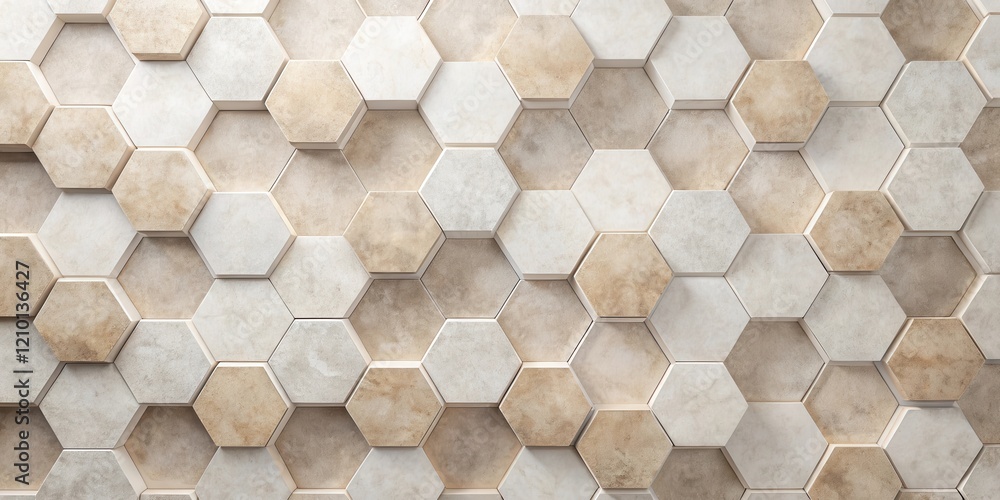 Abstract hexagonal tile pattern in neutral tones for modern designWall mural