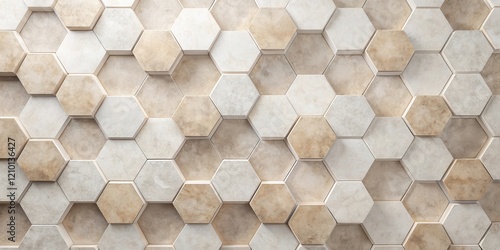 The watermark will not be included on Wall mural.: Abstract hexagonal tile pattern in neutral tones for modern design