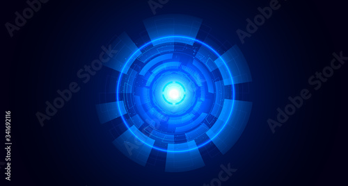 Wall mural : Abstract hi-tech communication background with hud elements circle digital futuristic blue color gra
