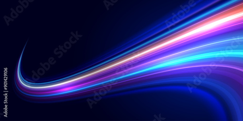 Wall mural : Abstract high speed movement background - speed line neon glowing curves - dynamic motion light trails