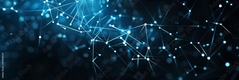 Wall mural : Abstract high tech blue glowing lines with dots and plexus triangles, abstract background - high qual