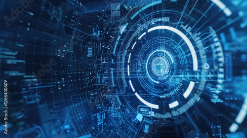 Wall mural : Abstract high tech blue screen background with circle graphs and diagrams