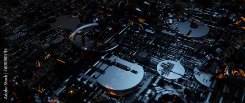 Wall mural abstract high tech digital technology background made of metallic plates. 3d rendering