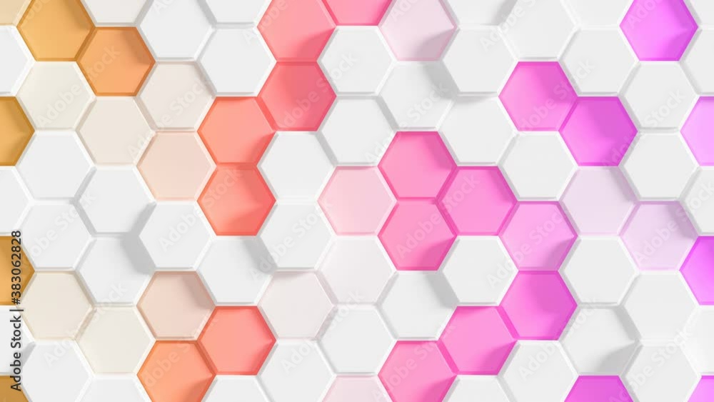 The watermark will not be included on Wall mural.: Abstract honeycomb geometry loop 1 multicolor 2: white and orange to purple gradient hexagons grid -