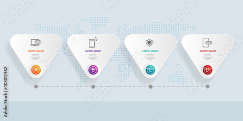 Wall mural : Abstract horizontal timeline infographics 4 steps with world map for business and presentation
