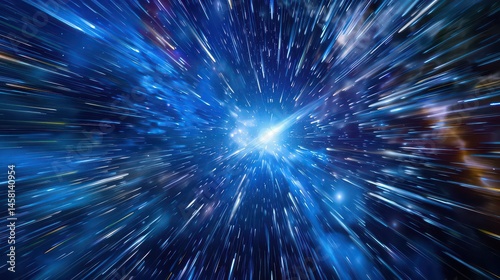 Wall mural : Abstract hyperspace jump with blue and white light streaks creating a sense of speed and motion blur