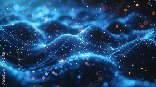 The watermark will not be included on Wall mural.: Abstract illustration featuring plexus blue geometrical shapes, representing connection and web conc