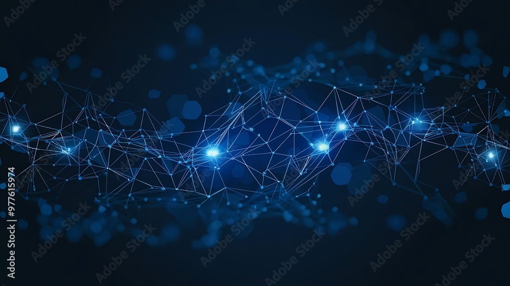 The watermark will not be included on Wall mural.: Abstract illustration featuring plexus blue geometrical shapes, representing connection and web conc